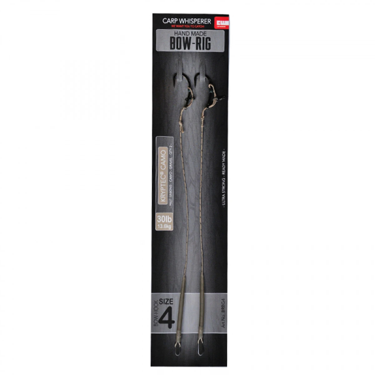 De kant en klare Bow rig nu online te bestellen! De Bow rig is misschien wel de meest effectieve karper rig die je kunt gebruiken voor het vissen met een wafter presentaties. Deze kant en klare onderlijn is gemaakt om zelfs de meest voorzichtige karper alsnog te vangen. De karperhaak is ingelust en mocht deze bot zijn geworden tijdens het vissen dan is de vishaak heel eenvoudig te vervangen. Het is een kwestie van oude haak uitlussen en nieuwe haak inlussen. Dit maakt het tevens mogelijk om niet alleen de Bow haak te gebruiken, maar ook is deze ready made rig prima te gebruiken met de Circle haak. De speciale vorm van deze karperhaak zorgt ervoor dat deze goed in de bek blijft zitten waardoor je nagenoeg geen losschieters meer krijgt in situaties met veel wier en zeer zachte karperbekken.