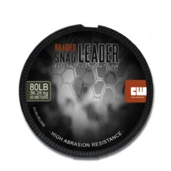 De gevlochten snag leader is gemaakt van een high performance vezel die snel zinkt en ook prima te splicen is. Hierdoor kun je hele mooie strakke verbindingen maken die ook nog eens heel sterk zijn. Deze nieuwe vezel is zonder twijfel de meest schuurbestendige vezel die er is. Tijdens het testen bleek de CW Snag Leader een stuk schuurbestendiger te zijn dan vergelijkbare leaders! En dat is natuurlijk een heel mooi gegeven!