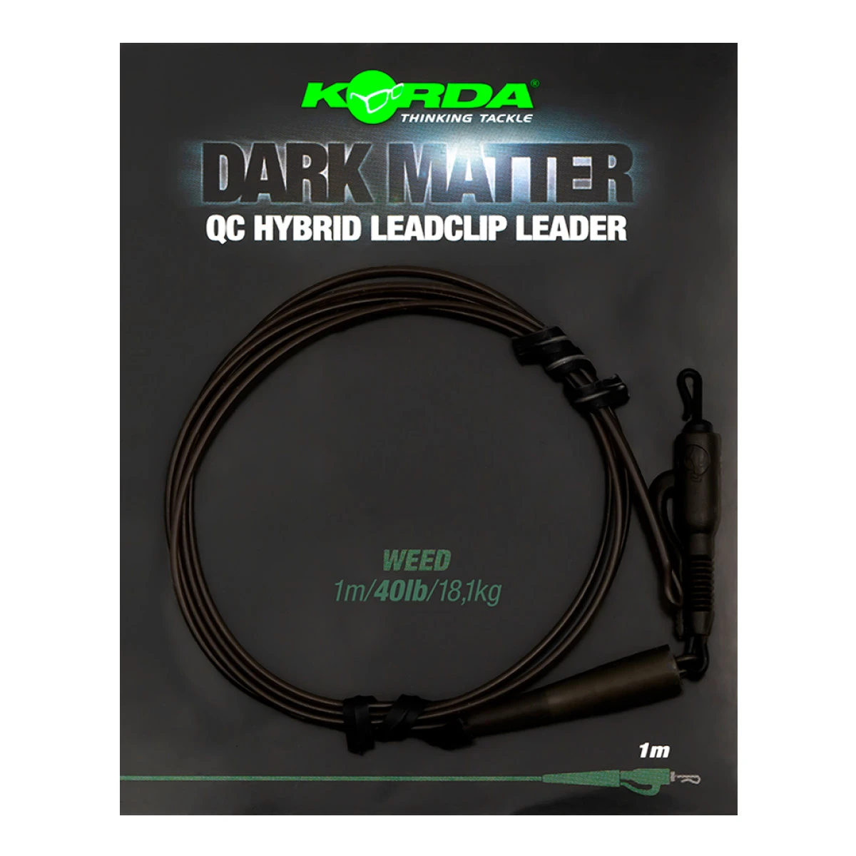 De Korda Dark Matter Leader is nu ook uitgevoerd met de handige QC hybrid clip. Deze QC clips maken het mogelijk om razendsnel van onderlijn en lood te kunnen wisselen en zorgen daardoor voor meer effectieve vistijd. Op een aantal plekken van de leader is er tungsten in verwerkt, zodat deze vlak over de bodem blijft liggen.