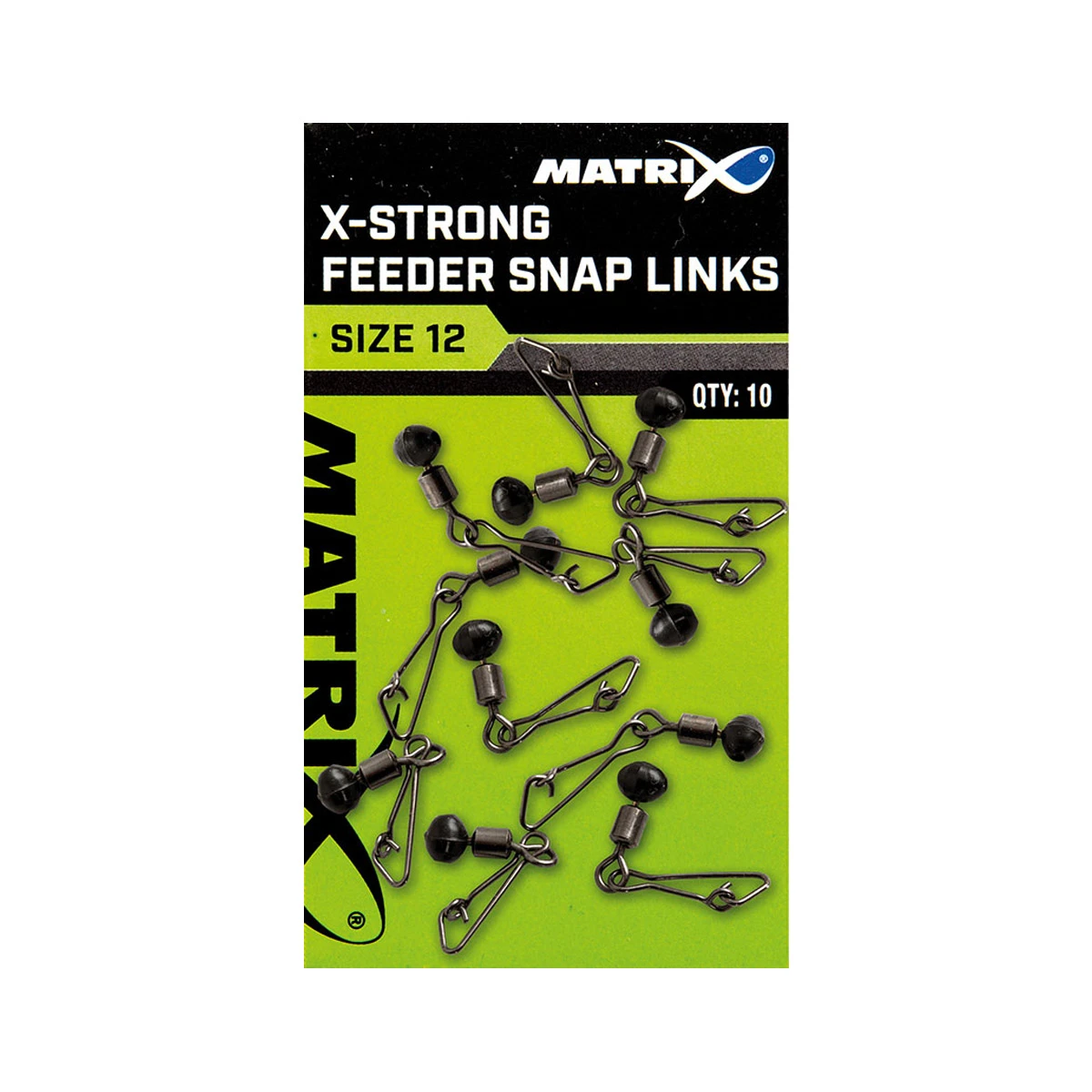 De ultra duurzame x-strong feeder snap link swivels van Fox Matrix hebben een anti corrosie coating en een super soepele rotatie. Verder beschikken deze wartels over een grote diameter voor gemakkelijk glijden over de lijn en zijn ze erg geschikt voor verre worpen met zware feeders.