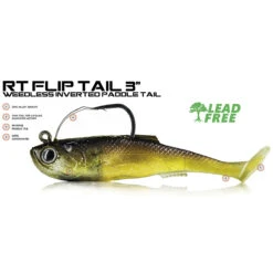 De nieuwe Molix RT Flip Tail is extreem levensecht, het perfecte kunstaas om agressieve aanvallen van alle soorten roofvissen te stimuleren. Het is gemaakt met een “loodvrij” gewicht van zinklegering, gewapend met een weedless haak van topkwaliteit. Door de wire weedguard loopt deze swimbait gemakkelijk over de wierbedden en door zware begroeiing. De zachtheid van het plastic lichaam verbetert de levensechte aantrekkingskracht van het aas en verhoogt de trillingen tijdens elke inhaalsnelheid. De omgekeerde positie van de staart zorgt voor een unieke zwemactie bij dit aas en verleidt geweldige reactiebeten, zelfs van de meest bedachte vissen.