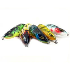 Deze 18 cm 4-delige swimbait zal u verbazen! De Fatal Attraction is op vele manieren te vissen namelijk, draai ‘m binnen en de aktie is al subliem maar ga je deze swimbait “”jerken”” dan krijg je een totaal ander stuk kunstaas. Doordat de Fatal Attraction zeer langzaam zinkt kunt u ‘m gewoon eventjes stil “”hangen””, tik ‘m zacht binnen en er ontstaat een zeer goede immitatie van een gewonde prooi. Daarnaast is de Fatal Attraction voorzien, zoals alle Rozemeijer pluggen van het unieke 360RSHS systeem. Dit houdt in dat de dreggen gewoon 360graden rond kunnen draaien waardoor het aantal “”lossers”” aanzienlijk zal dalen! Deze swimbait met fatale aantrekking voor onze vriend snoek maakt ‘m een vanger. Een topper voor de grote en dikke dames! Rozemeijer pro tip Fatal Attraction Deze swimbait, met zijn gewicht van 95gr, is feitelijk met iedere jerkbaithengel met een werpgewicht tot 100gr te werpen. Draai je deze swimbait binnen, dan zal deze gracieus terug zwemmen, waarbij de kop lichtelijk schudt en de interne kogels flink wat geluid zullen maken. Wil je over planten heen vissen? Lift je hengeltop omhoog en vis de Fatal Attraction sub-surface, maar schrik niet van het geweld waarmee de snoeken hem komen halen! Echter als je de Fatal Attraction uitwerpt en gewoon binnen draait doe je jezelf tekort! Vis de Fatal Attraction eens jerkend of twitchend. Terwijl je binnen aan het draaien bent, geef korte rukken met je hengel, stop even, geef weer een ruk, en draai dan weer binnen. De swimbait zal dan dartelende bewegingen maken, afzinken, weer omhoog schieten en dat zal zelfs een argwanende rover over de streep trekken! Trollend is de swimbait perfect over waterplanten en rotsen heen te vissen. Aan de ondiepe kant op de rivier is er geen betere swimbait te vinden die zinkend is. Wil je hem wat dieper aanbieden, monteer een wartelloodje voor de swimbait en deze zal automatisch dieper gaan. Een perfecte techniek voor die koudere winterdagen. Gebruik je de Fatal Attraction, zorg dan dat je een lange onthaaktang en kniptang bij de hand hebt, want de rovers willen er nog wel eens flink overheen schuiven.
