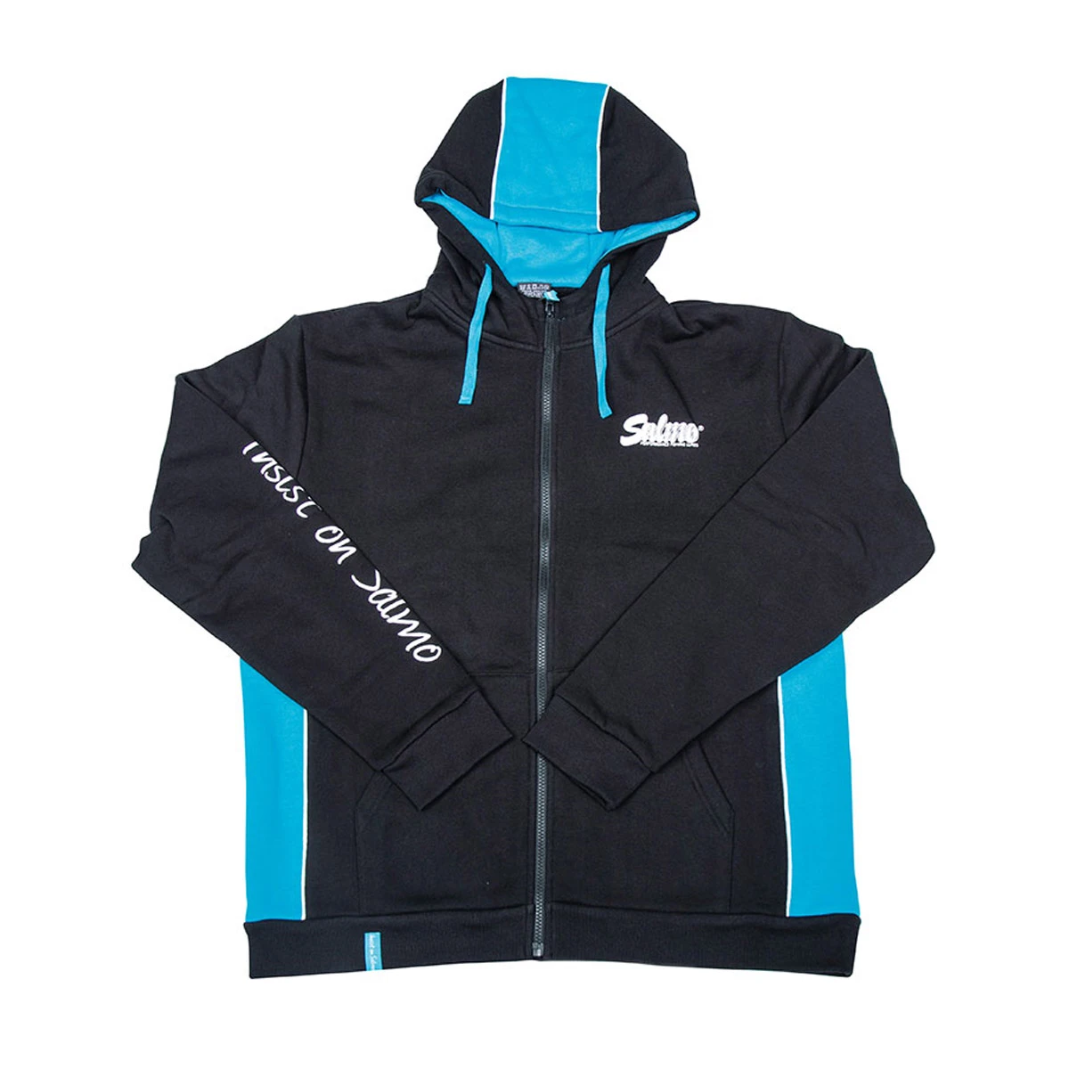 Een stijlvolle Hoody met ritssluiting en Salmo logo’s op voor- en achterzijde. Verder zitten er Salmo blauwe panelen aan de zijkant en op de capuchon.
