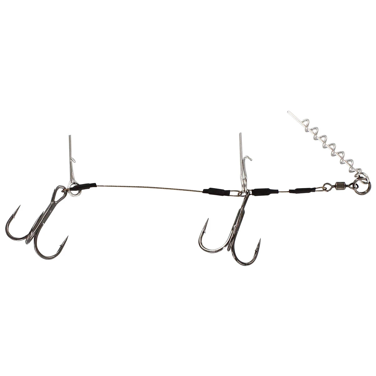 Deze dubbele stinger zijn voorzien van een screw, waardoor je deze makkelijk in de shad kan bevestigen. Verder zitten er spikes aan zodat de dreg vrij blijft van de shad.